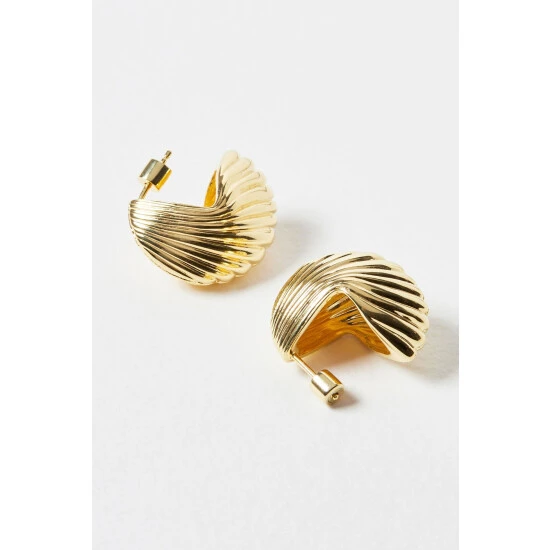 Oliver Bonas Montane Fortune Cookie Gold Plated Engraved Hoop Earrings