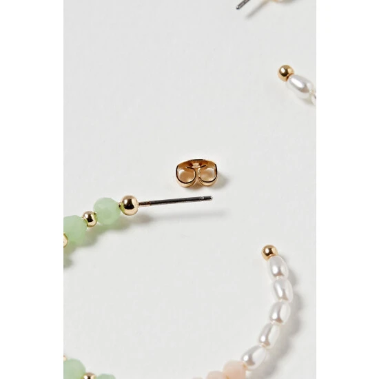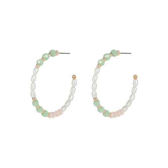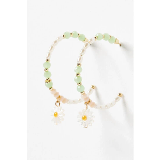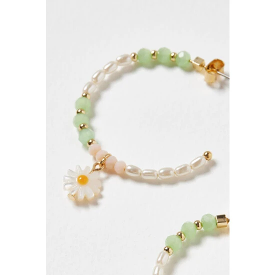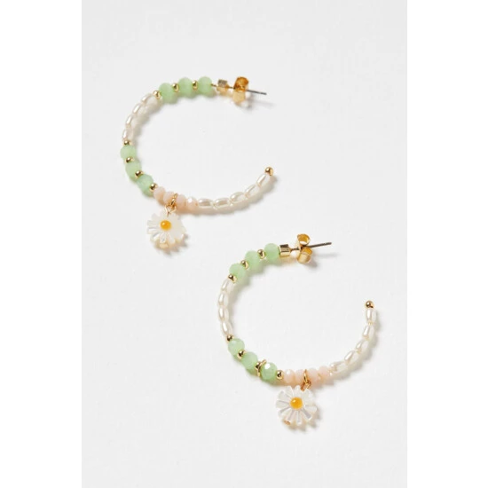 Pairing on-trend beading with a classic hoop silhouette, these statement hoop earrings feature pastel-toned embellishments and faux pearls, finished with a daisy charm and stud backs.