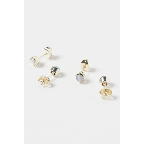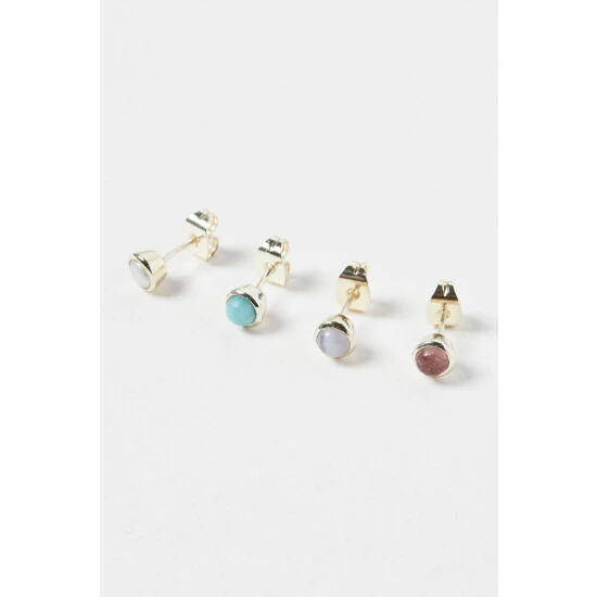 Oliver Bonas Multi Oriana Semi Precious Stone Inlay Mixed Shape Pack Of Four Stud Earrings