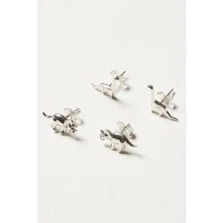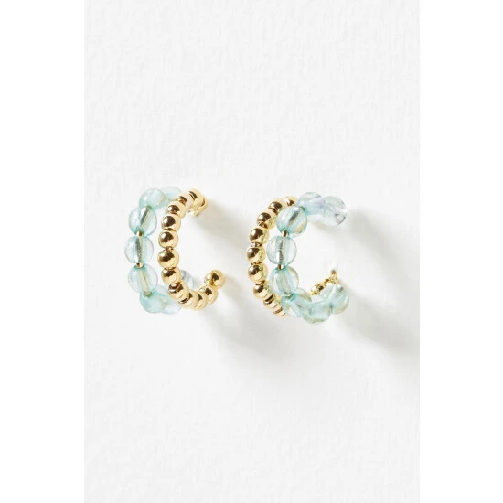 In a double row, blue beads curve alongside gold-toned metal beads on hoop earrings. Perfect for adding some colour to your look.