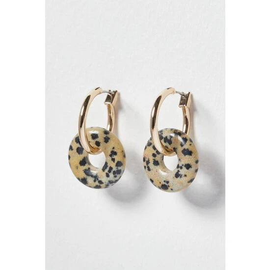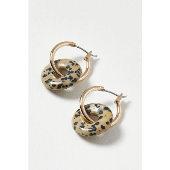 Oliver Bonas Natural Alaia Interlinked Hoop And Speckled Stone Hoop Earrings