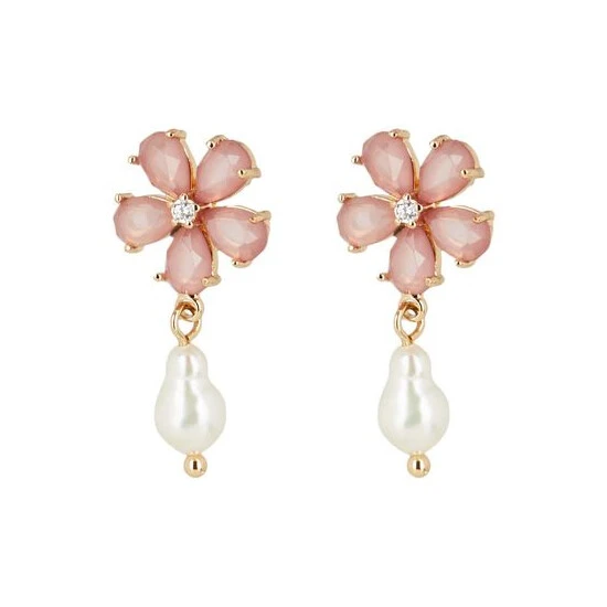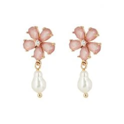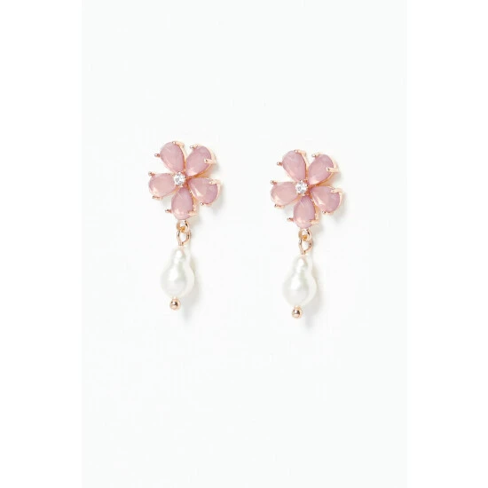 Oliver Bonas Natural Ariana Flower And Pearl Drop Stud Earrings
