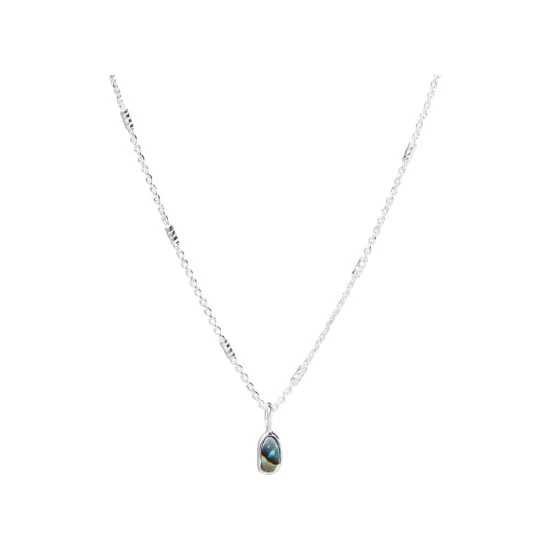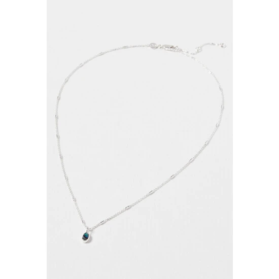 Oliver Bonas Natural Blythe Pebble Charm Paua Shell Silver Coloured Pendant Necklace