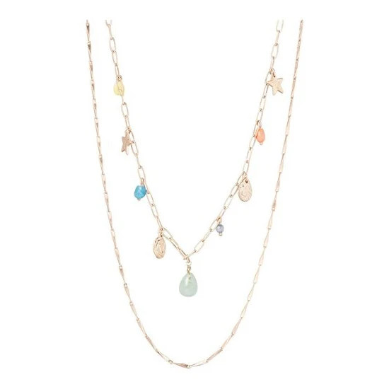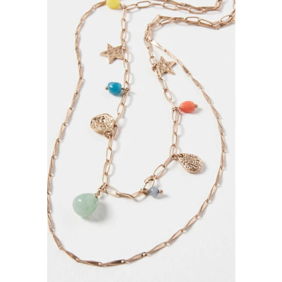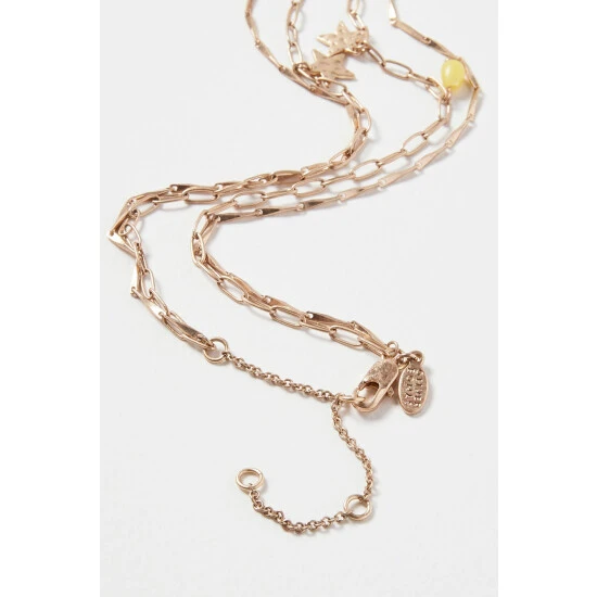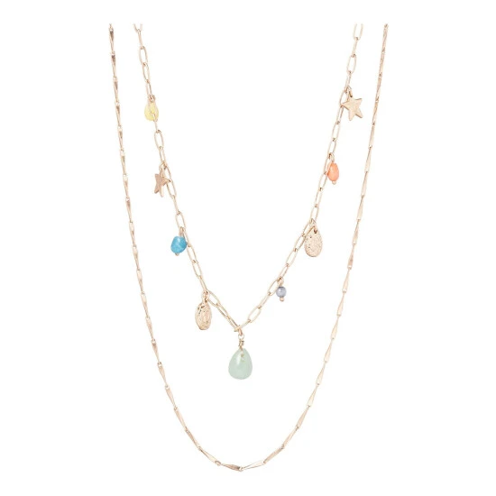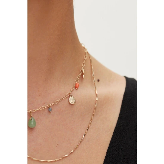 This gold-toned chain necklace features a gold pendant with amethyst details, complete with a hook through clasp.