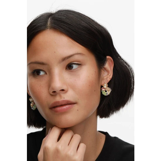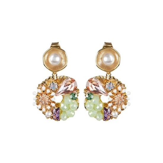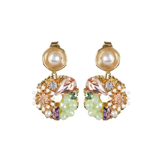 Add a touch of elegance to your selection of jewellery with these drop earrings. Featuring a stud back, the earrings have an arrangement of glass beads and gems set on a gold-toned drop disc.