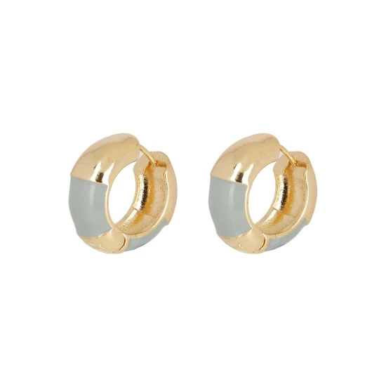 These small huggie earrings feature a grey and gold-toned enamel exterior, complete with clicker clasps.