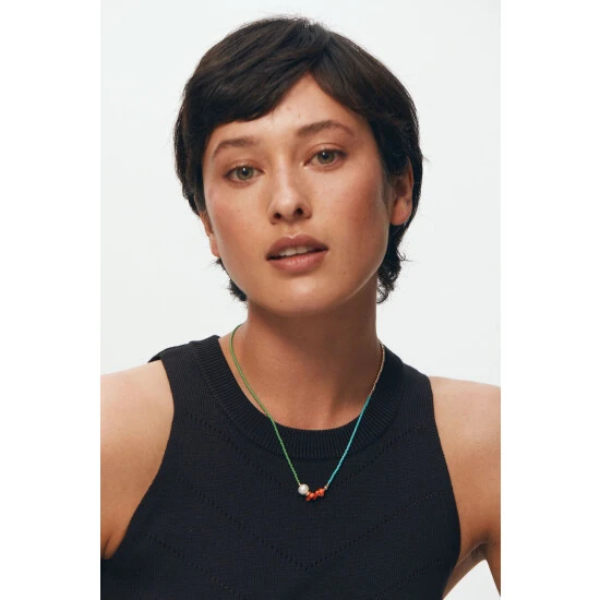 Oliver Bonas Natural Nara Seed Bead Pearl And Stone Chips Necklace