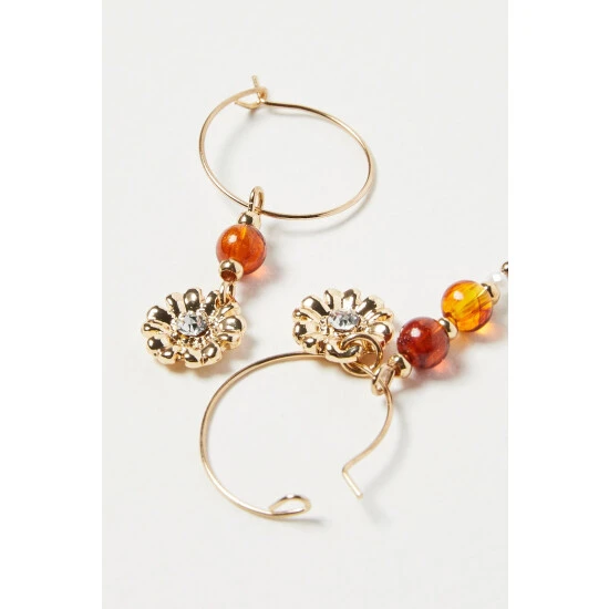 Oliver Bonas Natural Valentina Flower Motif Drop Hoop Earrings