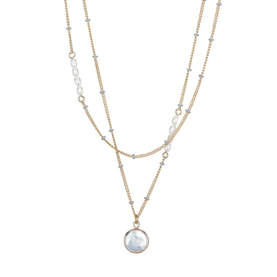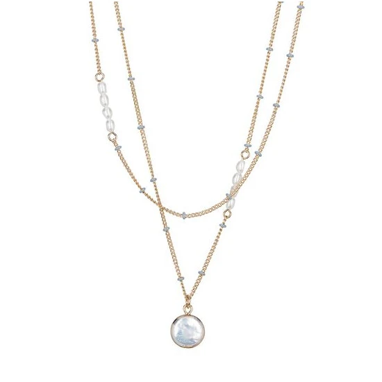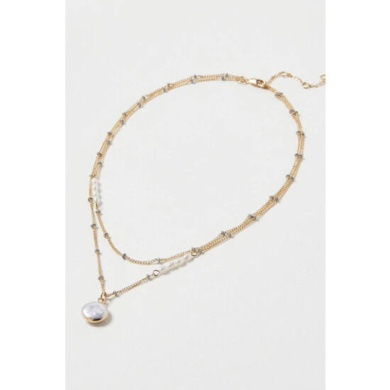 Oliver Bonas Nyla Natural Enamel Bead & Pearl Drop Layered Chain Necklace