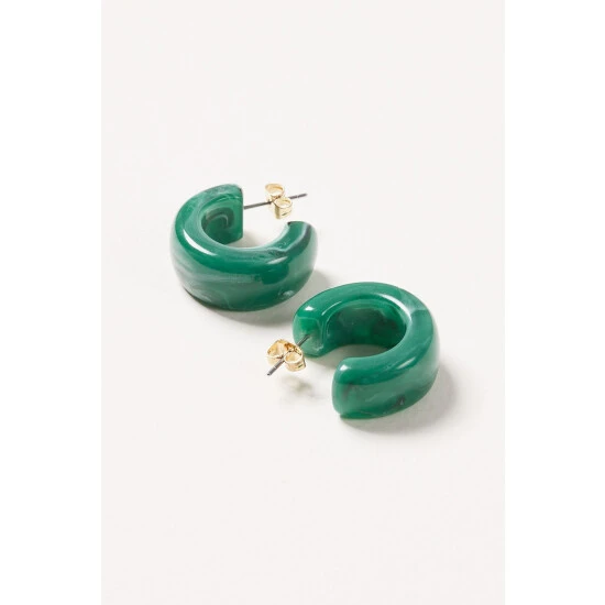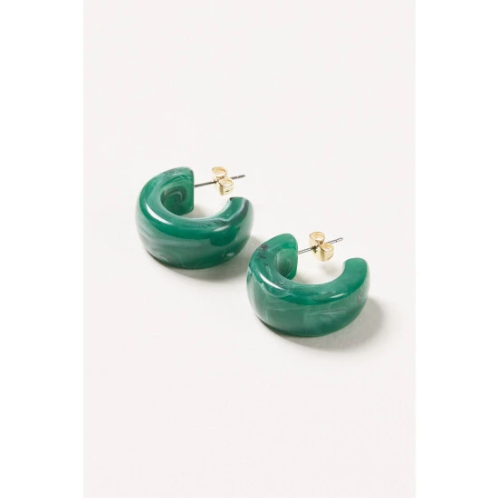 In a deep, marbled green, these chunky resin hoop earrings are a bold addition to your jewellery collection.