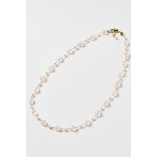 Oliver Bonas Pink Clover Pearl And Quartz Gold Plated Collar Necklace