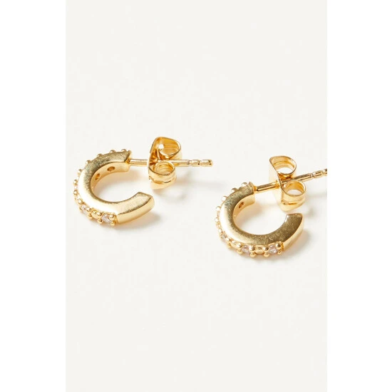 Oliver Bonas Rico Stone Detail Gold Plate Mini Hoop Earrings