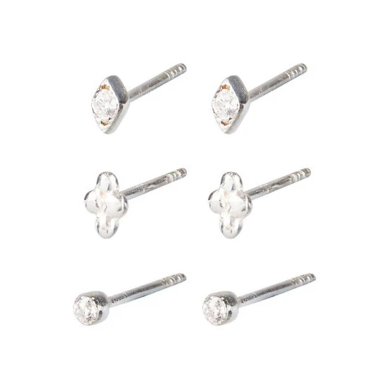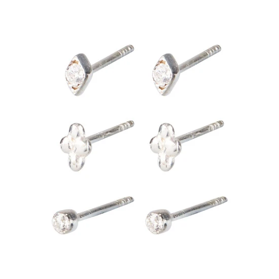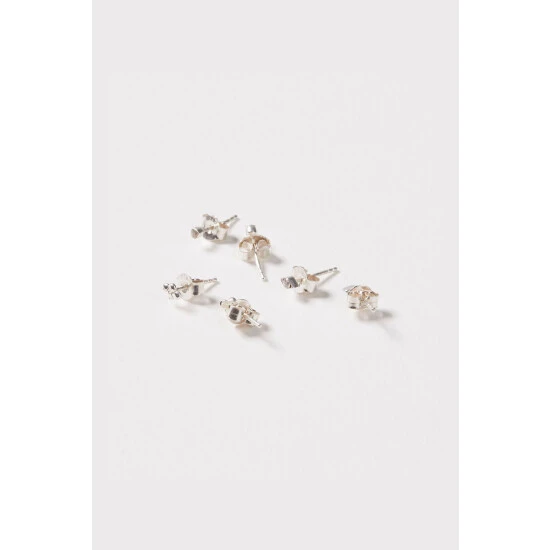 Oliver Bonas Silver Carlotta Mini Shape Silver Stud Earrings Set Of Three