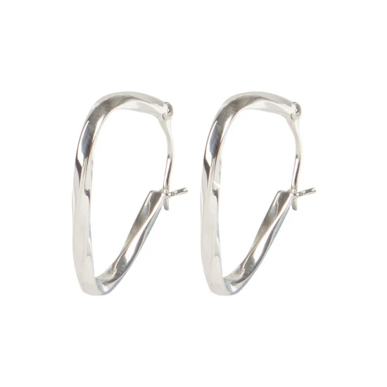 Combining an angular spiral silhouette with a high-shine finish, these silver earrings adds a new twist to your hoops, completed with latch backs.