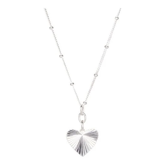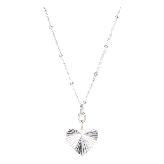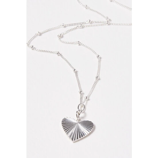 Oliver Bonas Silver Plated Grazia Machine Engraved Heart Charm Necklace