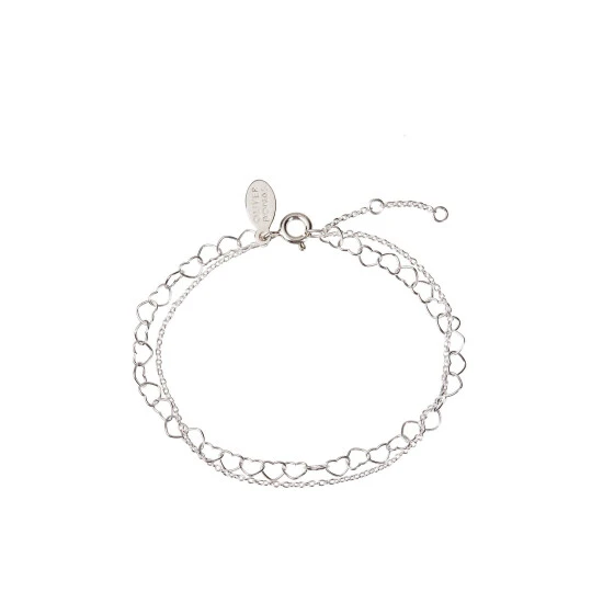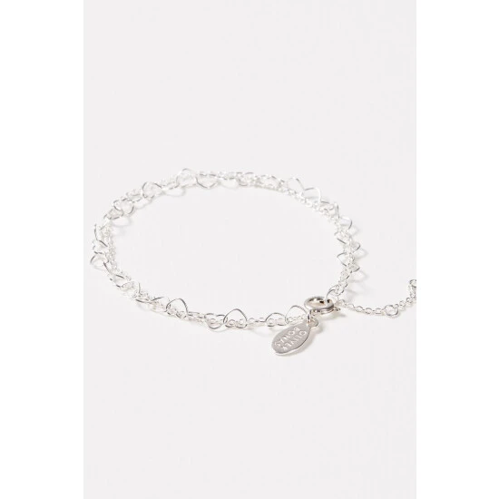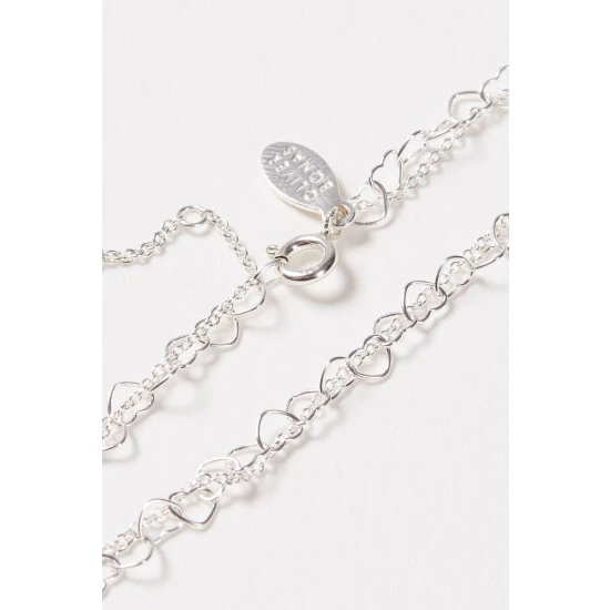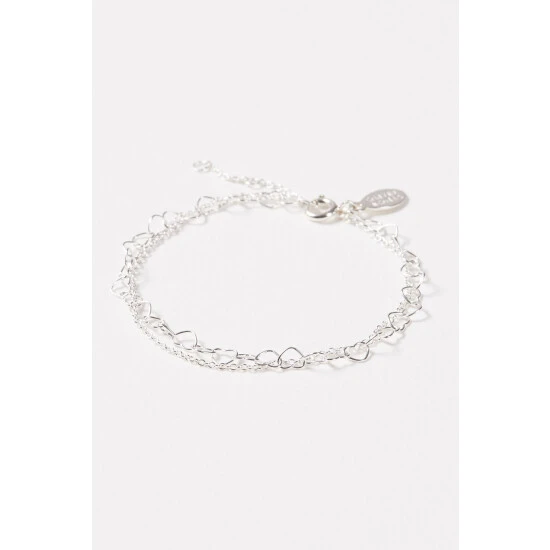 Oliver Bonas Silver Tone Carmine Heart Link Chain Double Row Bracelet