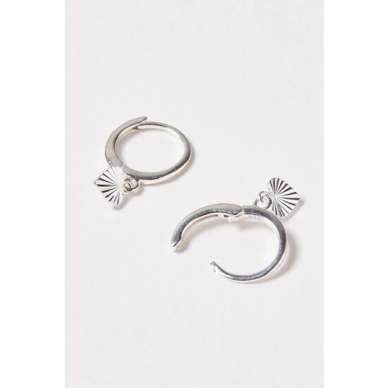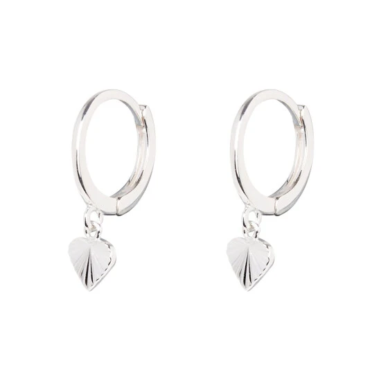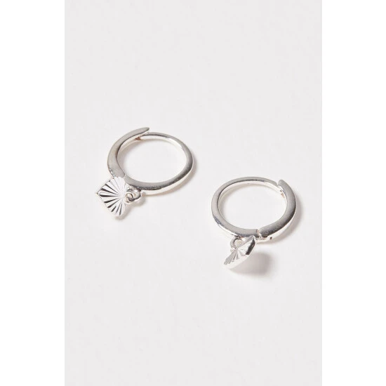 Oliver Bonas Silver Tone Grazia Machine Engraved Heart Charm Drop Hoop Earrings