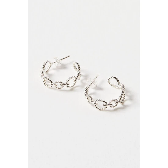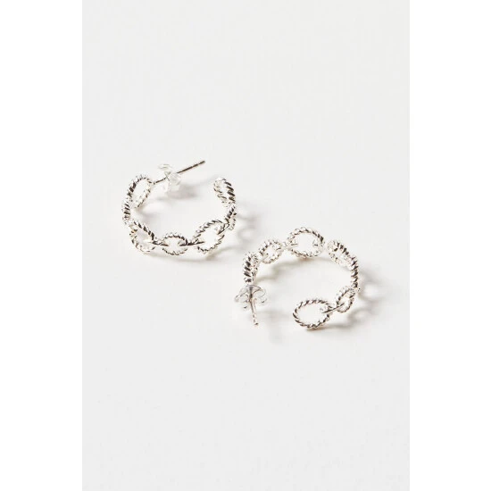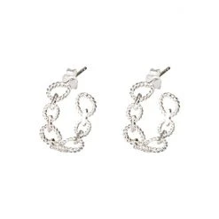 For an on-trend twist to your hoops, these silver 925 earrings feature a linked loop design combining a high-shine finish with a twisted texture, completed with stud backs.