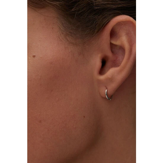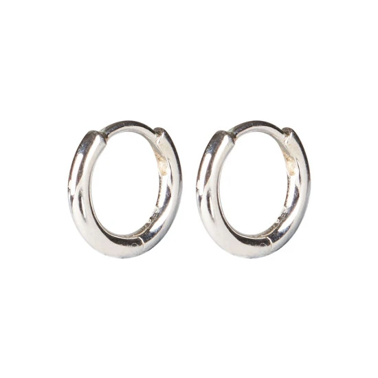 Designed to hug your lobes, these small huggie earrings have latch backs and are finished in a shiny silver tone.