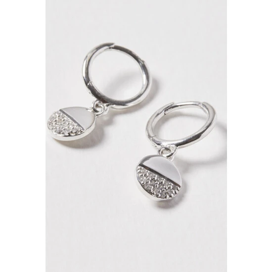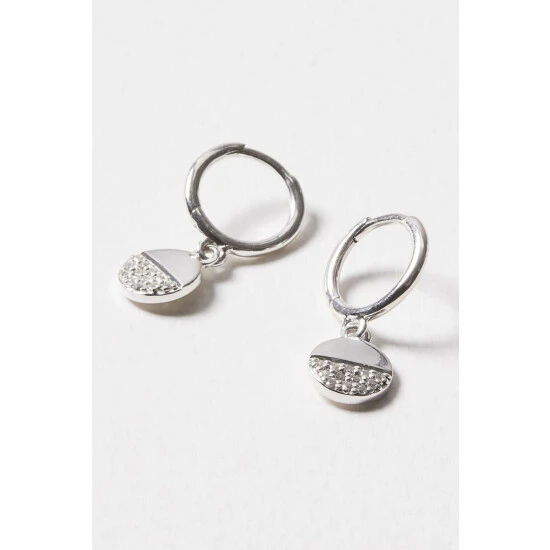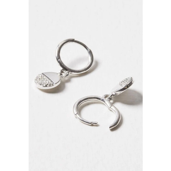 Oliver Bonas Silver Tone Linnea Stone Detail Semi Circle Drop Earrings