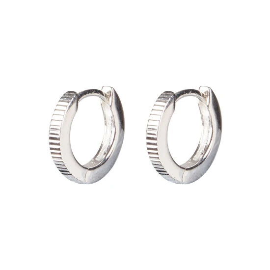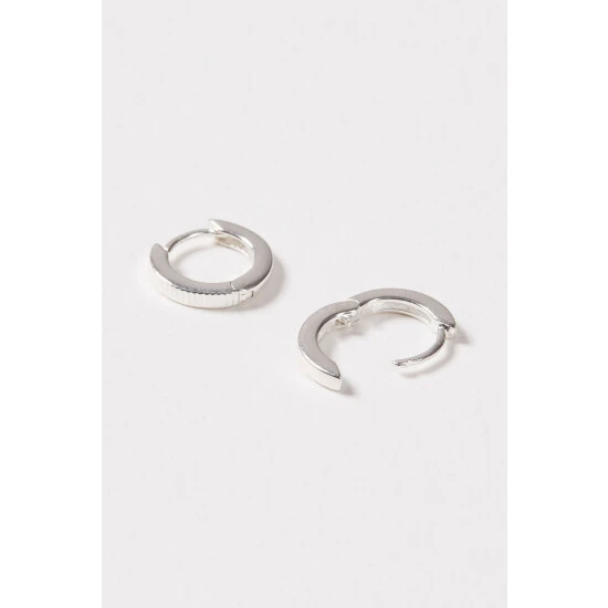 Oliver Bonas Silver Tone Omaira Half Engraved Round Hoop Earrings