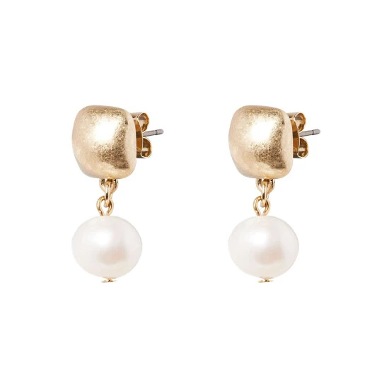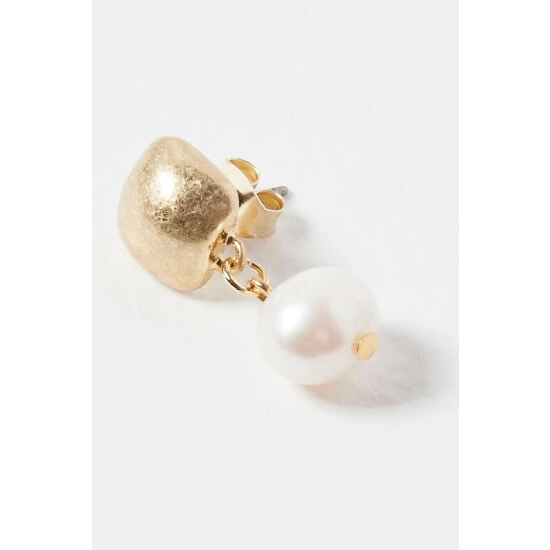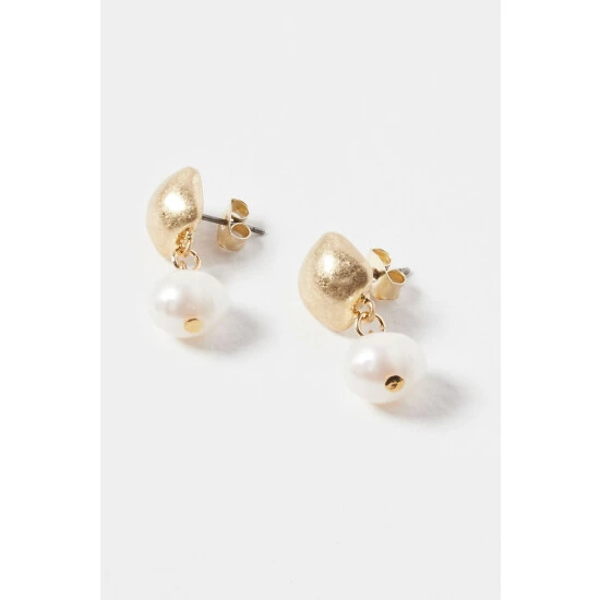 Oliver Bonas White Ottileigh Square And Pearl Drop Stud Earrings