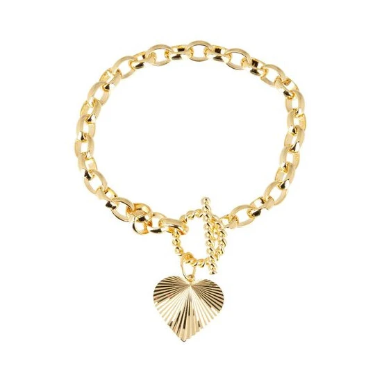 Oliver Bonas Womens Gold Plated Brass Adelaide Chunky Chain & Heart Charm Bracelet
