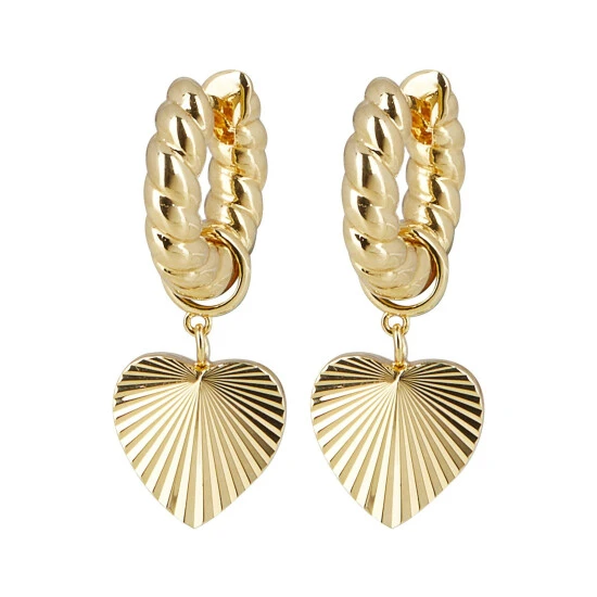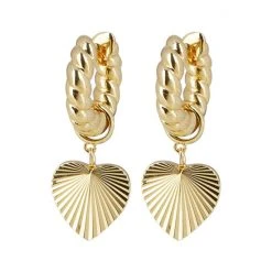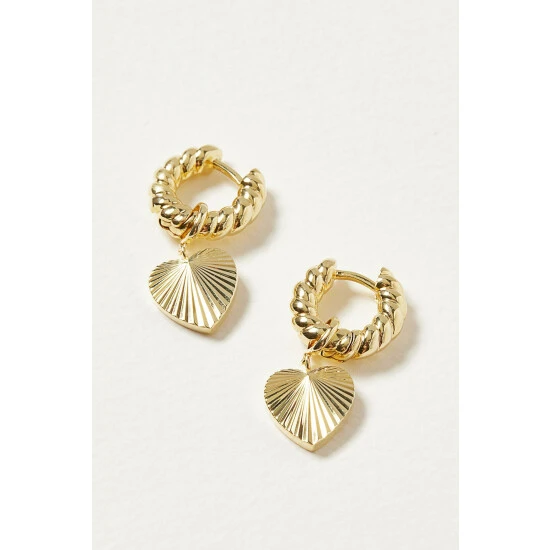 Oliver Bonas Womens Gold Plated Brass Adelaide Chunky Twist Hoop & Heart Charm Drop Earrings