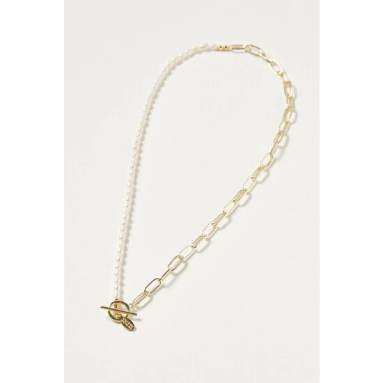 Oliver Bonas Womens White Odina Half Chain & Pearl Fob Clasp Gold Plated Brass Collar Necklace
